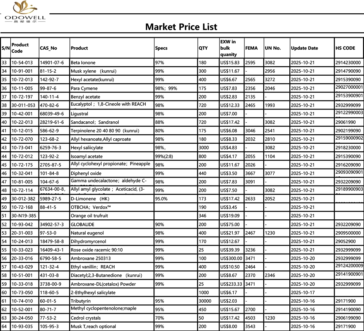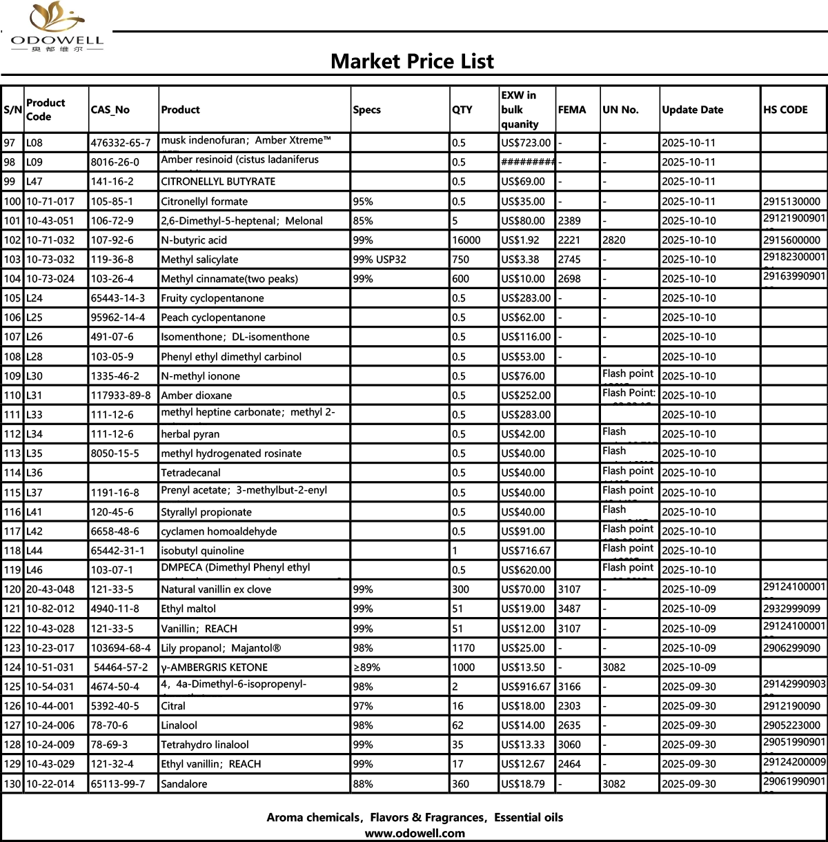Odowell-Liste de prix du marché-2025.9.30-2025.10.24