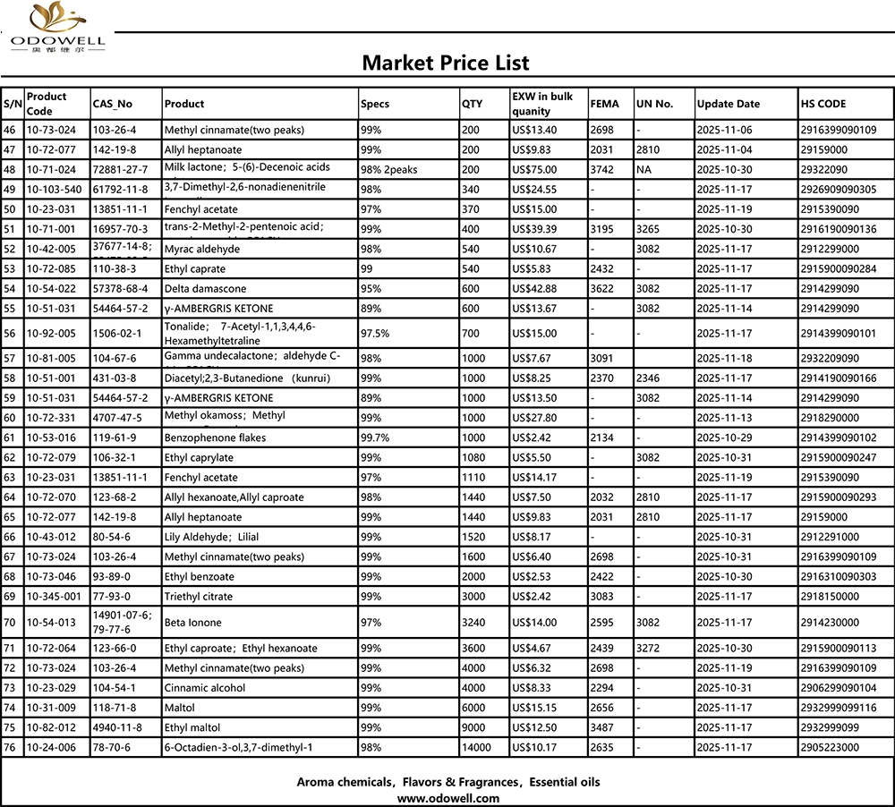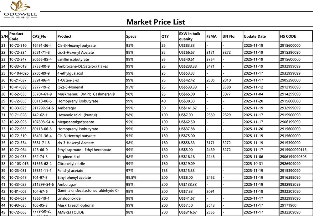 Odowell-Liste de prix du marché-2025.10.25-2025.11.25