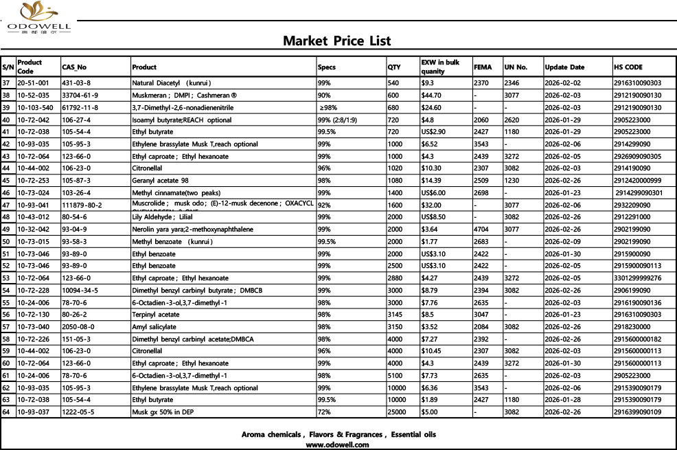 Liste de prix du marché Odowell-2026.1.23 - 2026.2.28